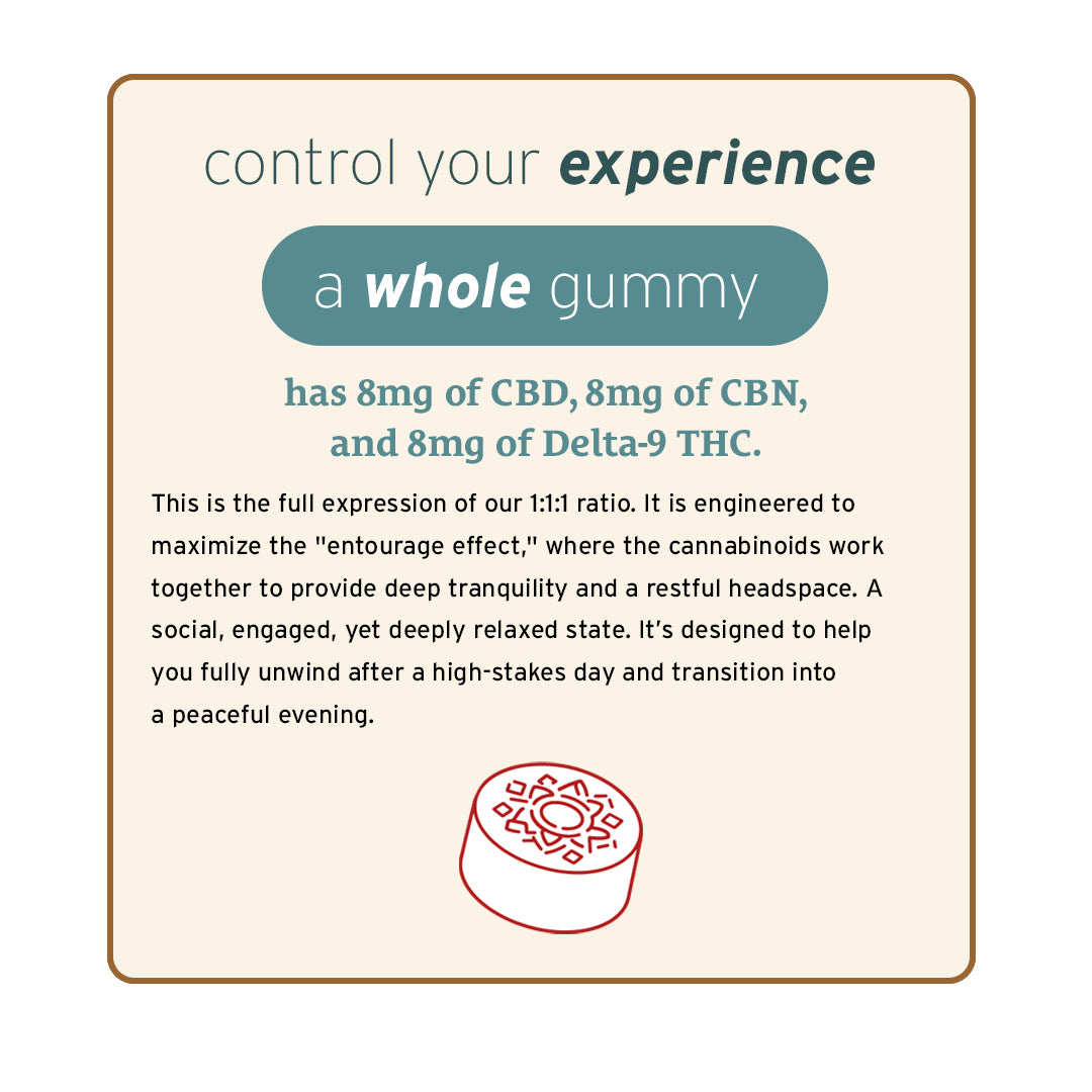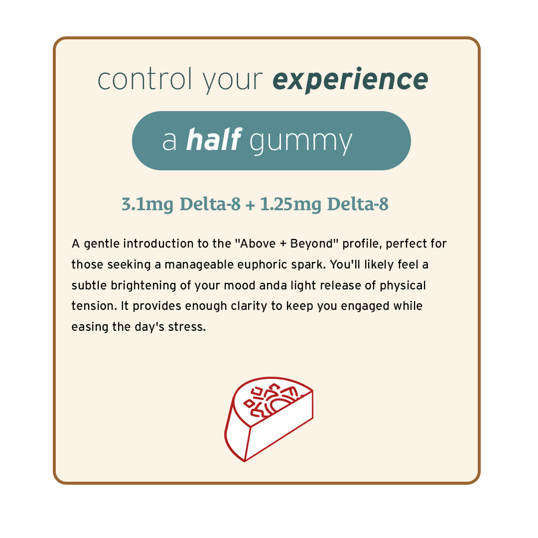 If you’re new to THC products, it’s generally best to start with a small serving size — like half a gummy — and adjust as needed each day to find the amount that works best for you.