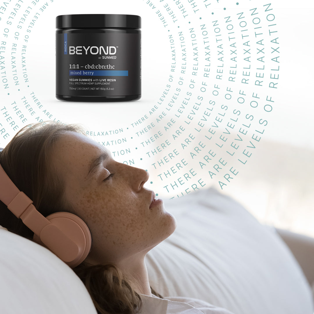 Unwind on a new level with Sunmed’s Beyond 1:1:1 Indica Live Resin Gummies. These best-sellers have strong, relieving sensations to help you drift off with full-body relaxation.