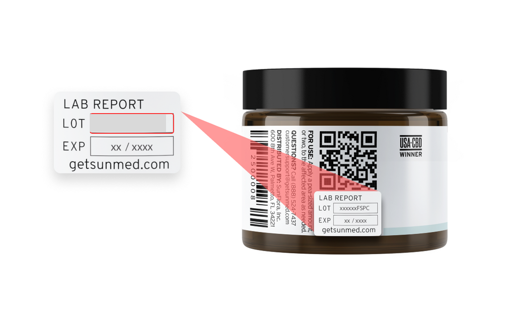 All Sunmed products will have a lot number displayed on the label. To locate your lab report, enter the lot number from your product below.