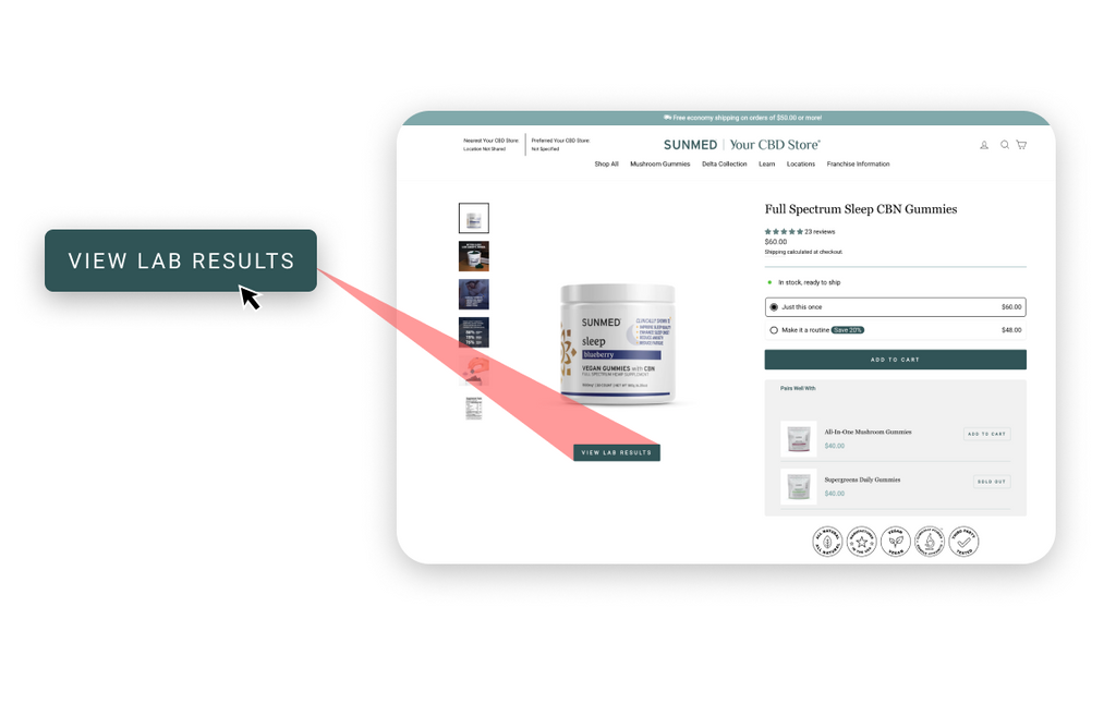 Every Sunmed Product Page contains a link to the latest lab report for that product. Simply click the “View Lab Results” button and you will get instant access to the report.
